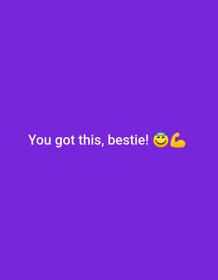 This image is a digital graphic, attributed to Cipinang, Indonesia, displaying a motivational message. The scene consists of a solid, uniform purple background. Centered horizontally, and positioned approximately two-thirds down the vertical axis, is white sans-serif text that reads "You got this, bestie!". Immediately following the exclamation mark, two emojis are present: a yellow smiling face with a blue halo (😇) and a yellow flexed biceps (💪). No people, physical objects, or a discernible physical environment from Cipinang, Indonesia are depicted within the visual content.