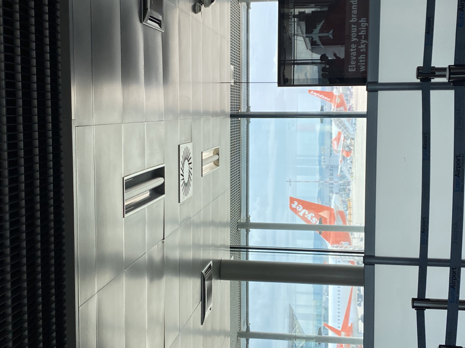 - "The image depicts an interior view of EuroAirport Basel Mulhouse Freiburg (EAP) in Saint-Louis, France, looking outwards onto an airport tarmac" by FM-6iGRw1, licensed under CC BY 4.0