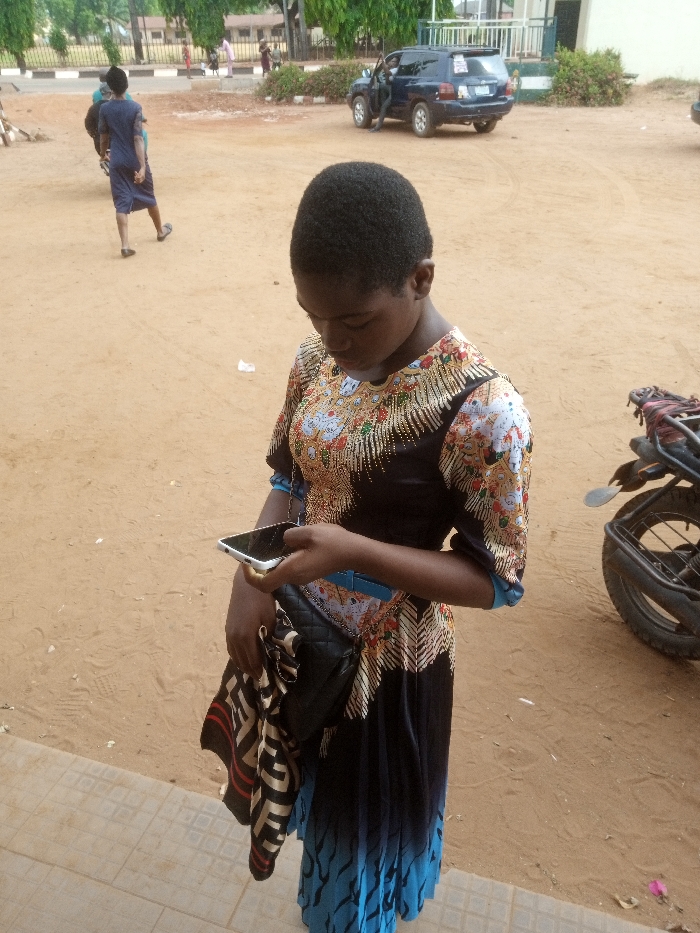 An outdoor scene in Nsugbe, Nigeria, depicts a young female in the foreground, standing on a light-colored paved surface