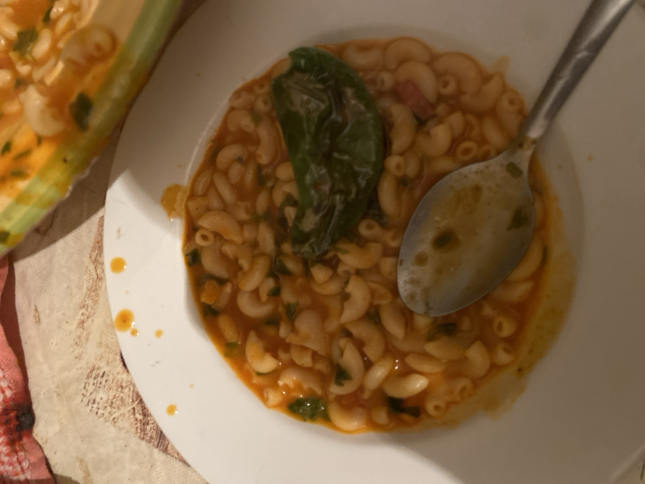 - "A top-down shot reveals a plate of macaroni pasta in a reddish sauce, garnished with a dark green pepper" by FM-VKGKm1, licensed under CC BY 4.0