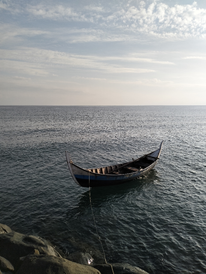- "A small, wooden boat floats on calm ocean waters" by FM-sAcf03, licensed under CC BY 4.0