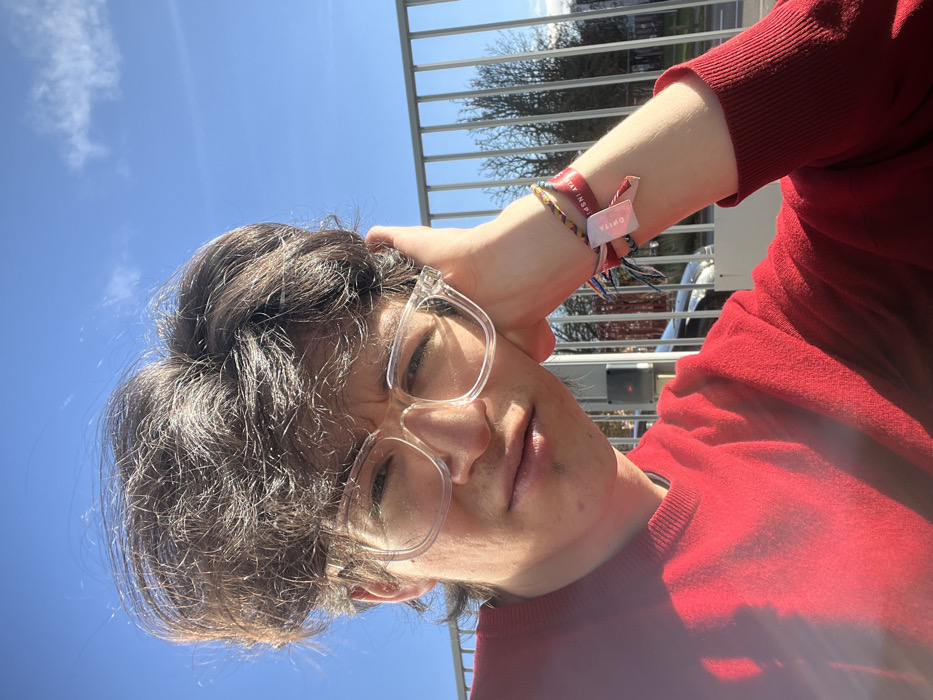 - "An outdoor, eye-level selfie photograph features a young male subject with dark, wavy hair and clear-framed eyeglasses, captured under a bright blue sky in Roubaix, France" by FM-NQrs03, licensed under CC BY 4.0