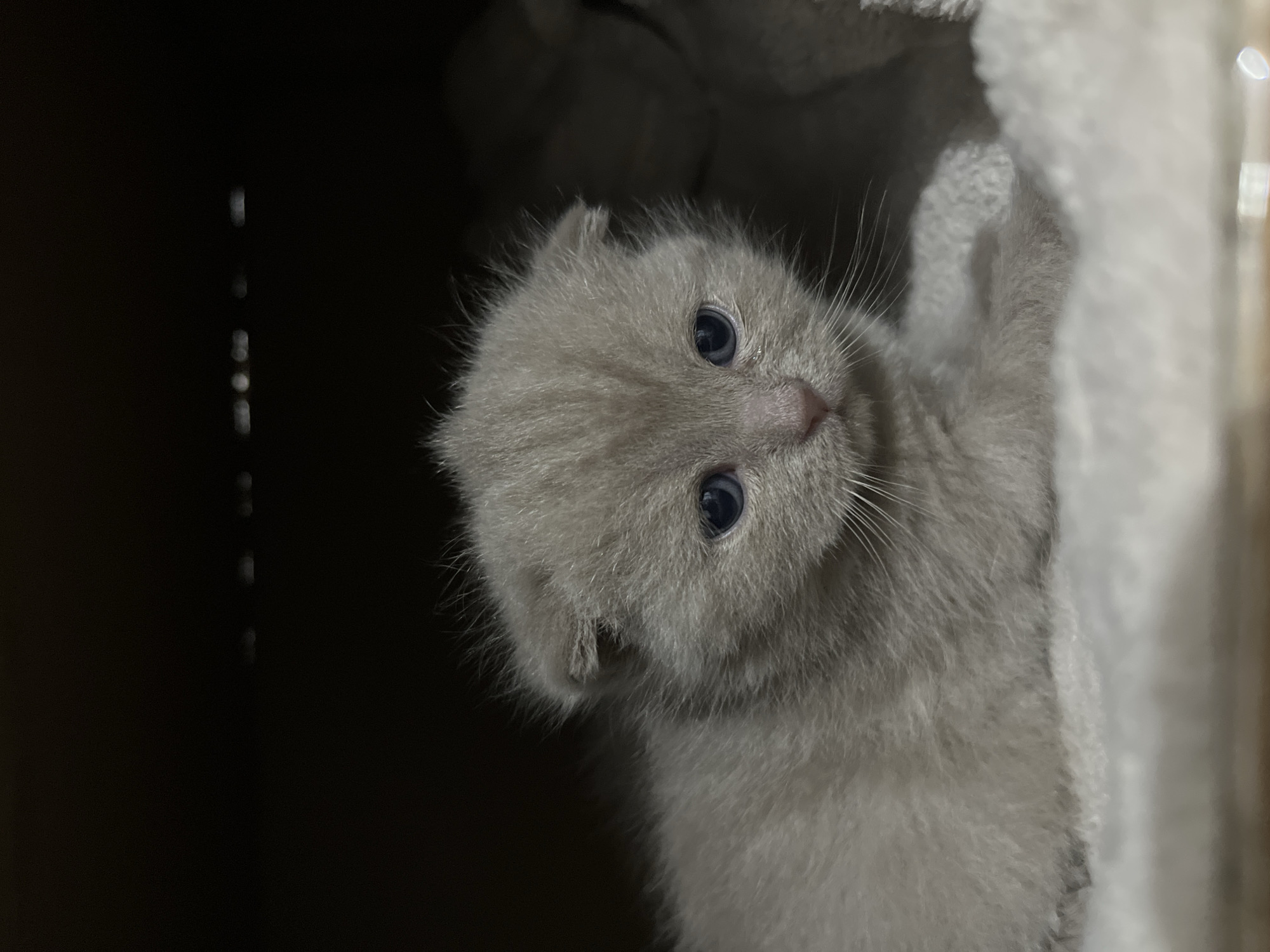 - "A close-up, tilted shot shows a grey kitten with blue eyes looking directly at the viewer" by FM-JCVbC2, licensed under CC BY 4.0