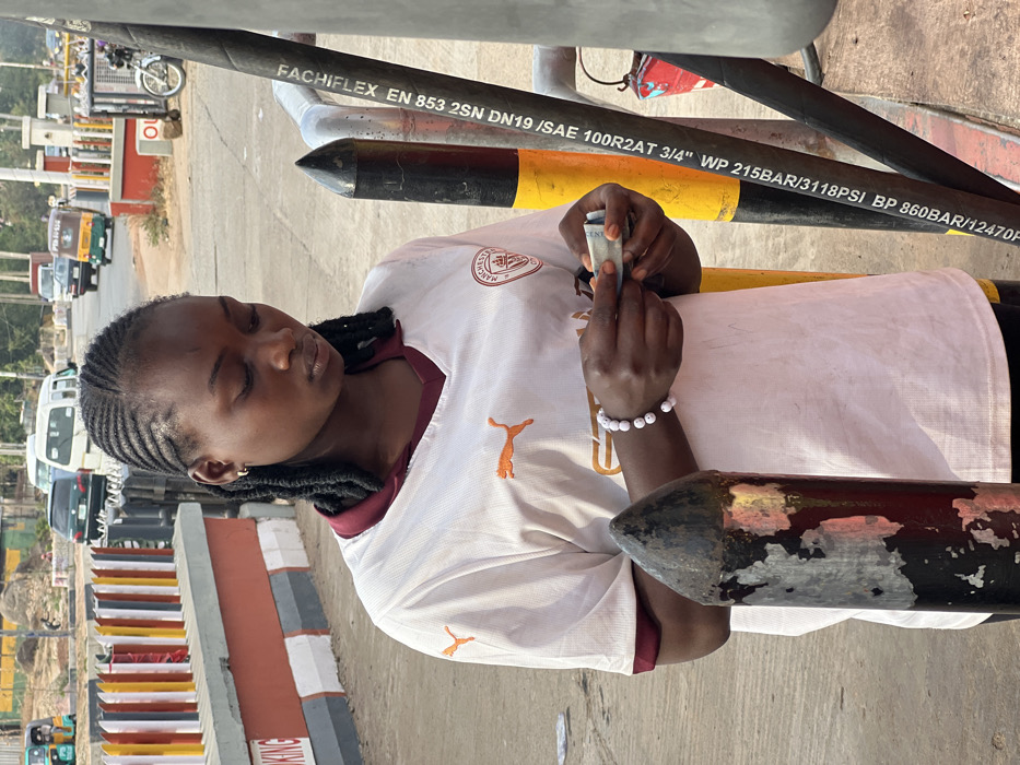 - "A woman in a soccer jersey stands near a structure with pipes, appearing to count money" by FM-2J6ky1, licensed under CC BY 4.0