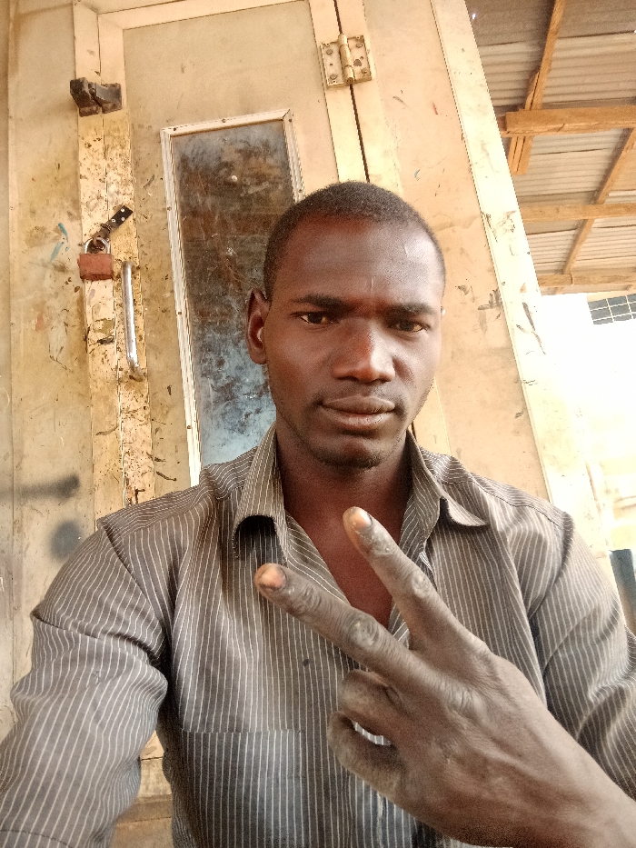 A male subject is captured in a medium-shot portrait in Sardauna, Nigeria, directly facing the camera
