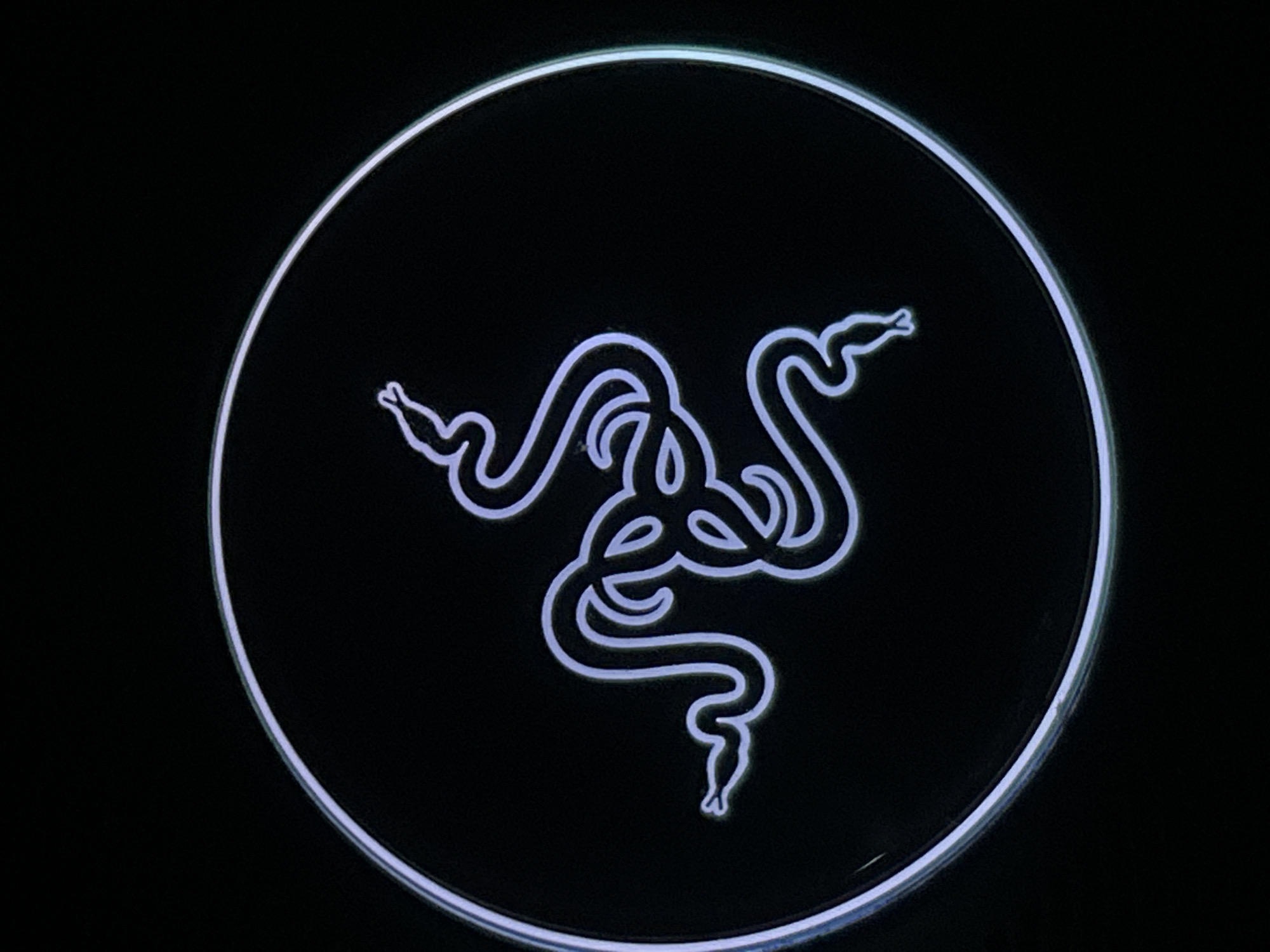 - "The scene, set within Karlsruhe, Germany, presents a close-up, vertically oriented view of the illuminated Razer gaming peripheral logo" by FM-rJ3Ld2, licensed under CC BY 4.0