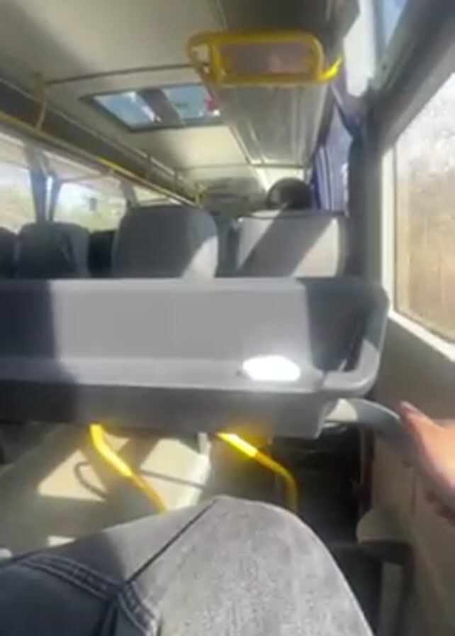 interior of a moving bus from the perspective of a passenger