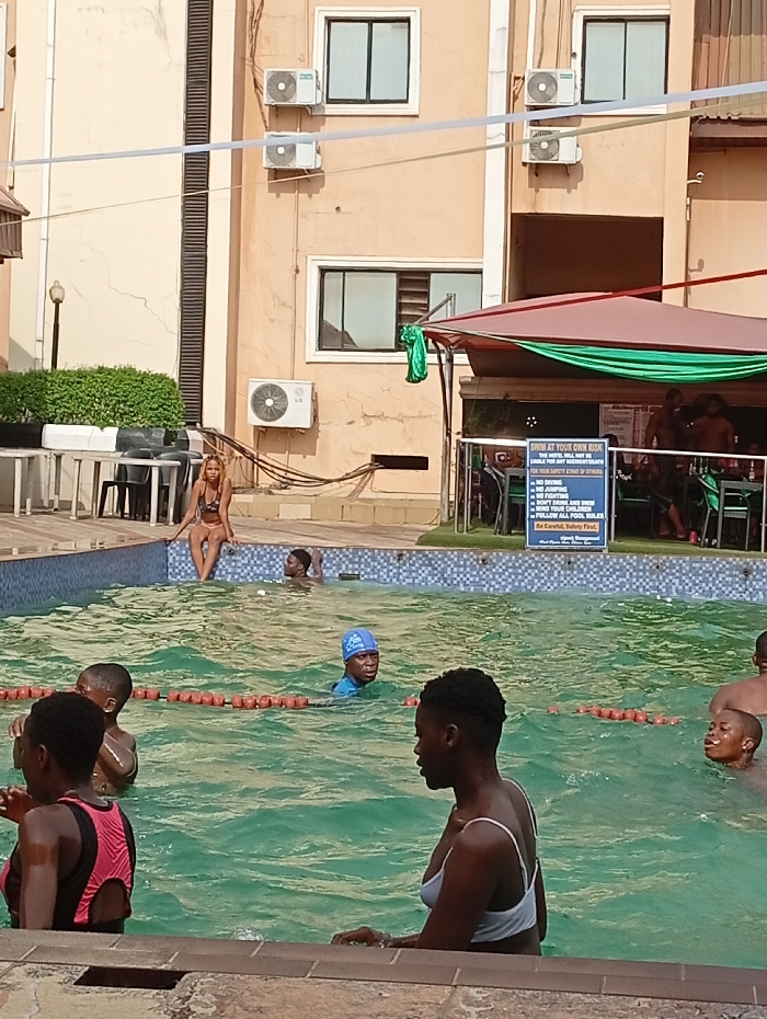 - "A sunlit outdoor swimming pool with several people enjoying the water" by FM-gopco1, licensed under CC BY 4.0