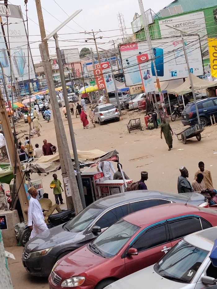 - "This image depicts a bustling street scene in Fagge A, Nigeria, characterized by an unpaved, uneven dirt road under an overcast sky" by FM-q4R863, licensed under CC BY 4.0