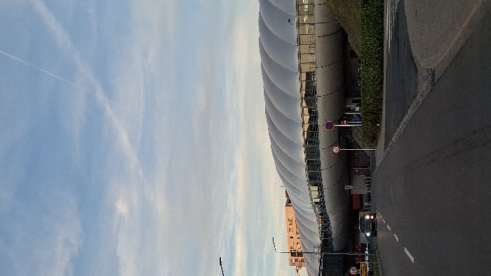 - "The image displays an exterior scene in Sanem, Luxembourg, likely during late afternoon or early evening, under a light blue sky with scattered clouds and visible aircraft contrails" by FM-VH5CK2, licensed under CC BY 4.0