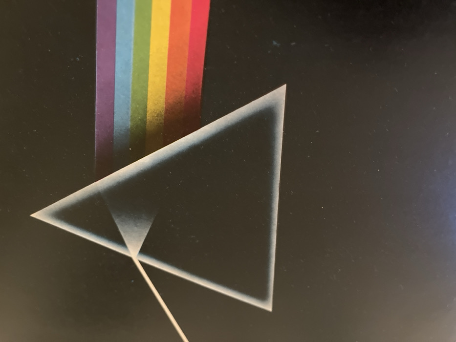 The image displays the graphic artwork for Pink Floyd's "The Dark Side of the Moon" album cover