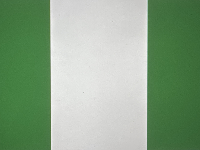 A vertically oriented, three-band flag is depicted in a close-up view. The flag features a central vertical white stripe flanked by two equally wide vertical green stripes, identifying it as the national flag of Nigeria. The green stripes on both the left and right are uniform in color and texture. The white central stripe displays a subtle surface texture and contains a few minute, dark particulate specks. No human figures, additional objects, or discernible actions are present within the frame. The flag is situated in the city of Novate Milanese, Italy.