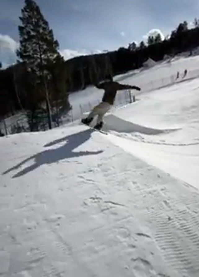 snowboarder performing a trick at a snow park