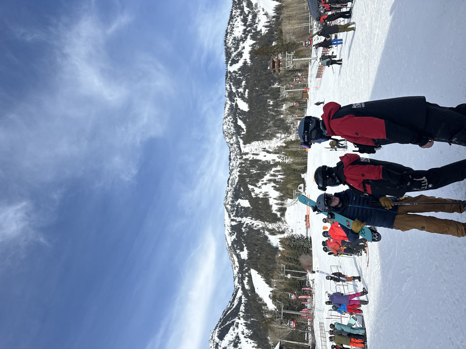 - "A winter scene displays a line of skiers waiting near a ski lift against a backdrop of a snow-covered mountain" by FM-IlG2F3, licensed under CC BY 4.0