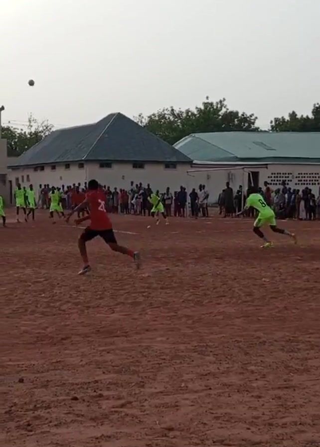 - "Here is a concise description of the scene: The video shows a soccer game in progress on a dirt field" by FM-NbkD03, licensed under CC BY 4.0