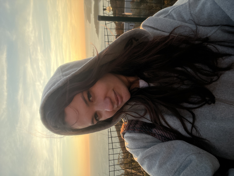 A female individual, estimated to be in her mid-20s to early 30s, is centered in the frame, taking a selfie