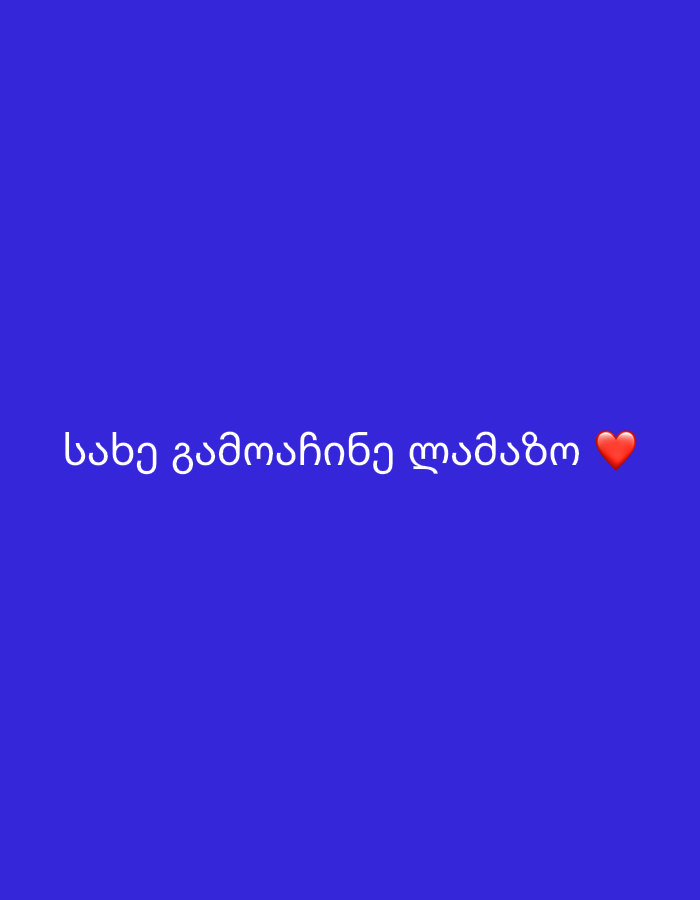 The image displays a solid blue background. Centered horizontally is white text in Georgian script, which reads 'სახე გამომირინე ლამაზო.' Immediately following the Georgian text is a red heart emoji. The Georgian text translates to "Wash my face, beautiful." The composition is entirely a digital graphic; no individuals, physical objects, actions, interactions, or environmental features are present.