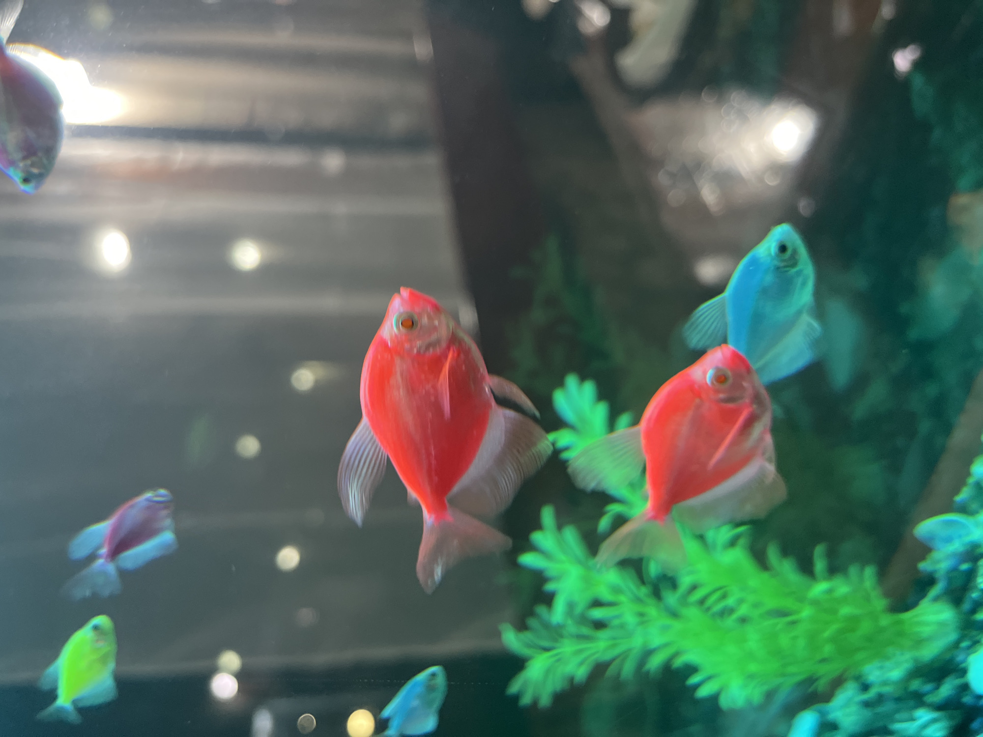 fish tank containing several GloFish