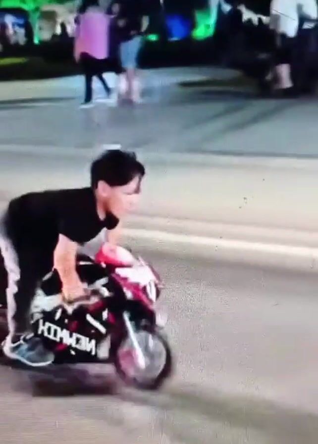 - "A boy on a miniature motorcycle crashes into the pavement in front of a few pedestrians" by FM-iVQs23, licensed under CC BY 4.0