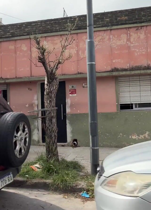 quick sequence of static shots of various cars driving down a street. The first shot shows a white hatchback, followed by a red SUV. The next shot shows the front of a building with a metal-grated garage door, and then a blue sedan driving past. The video is shot during the day, and the street is lined with buildings and trees.