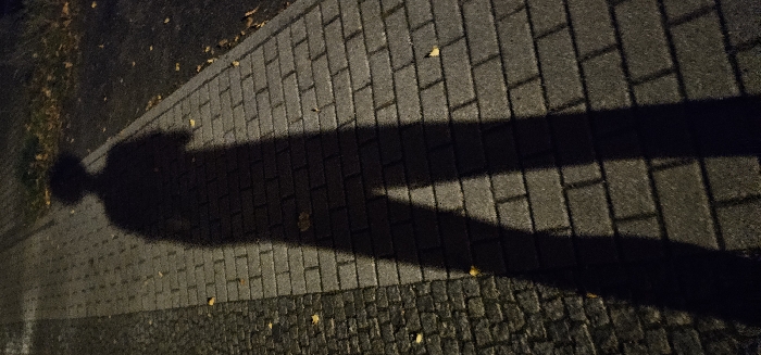 - "A long, dark human shadow is cast prominently on a paved pedestrian pathway in Kamenz - Kamjenc, Germany, under artificial illumination at night" by FM-pDwWG2, licensed under CC BY 4.0