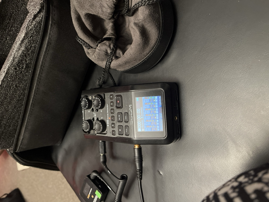 - "A black Zoom H6 Handy Recorder rests on a dark surface with accessories" by FM-Uav7S2, licensed under CC BY 4.0