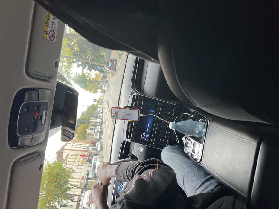 - "The image depicts the interior of a vehicle, viewed from a rear passenger seat, looking forward onto a street in Saint-Denis, France" by FM-2ffbq1, licensed under CC BY 4.0