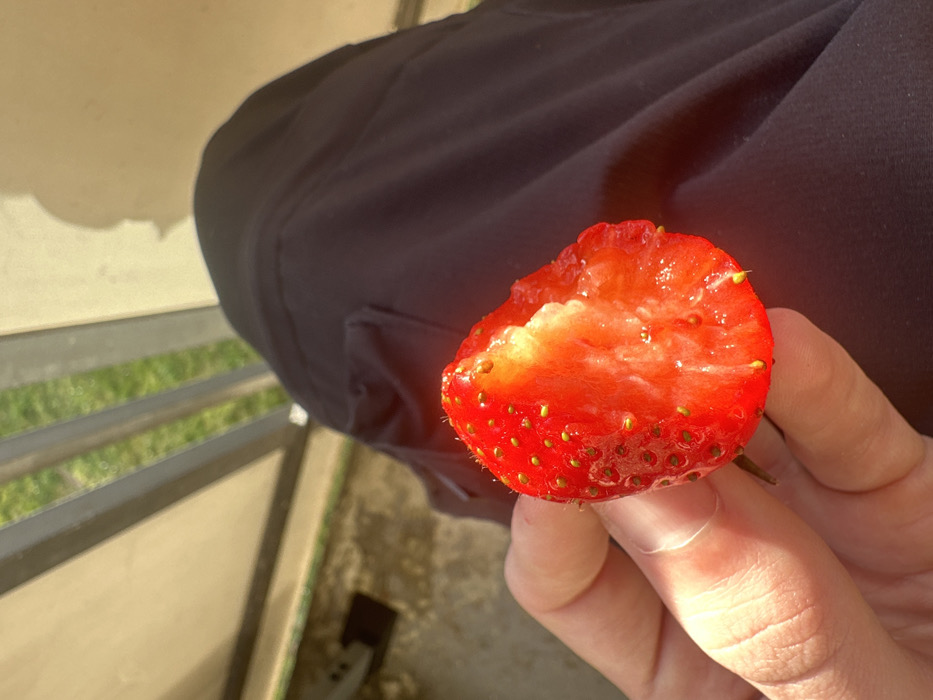 - "A partially consumed, bright red strawberry is held in the left hand of an individual" by FM-oJKy32, licensed under CC BY 4.0