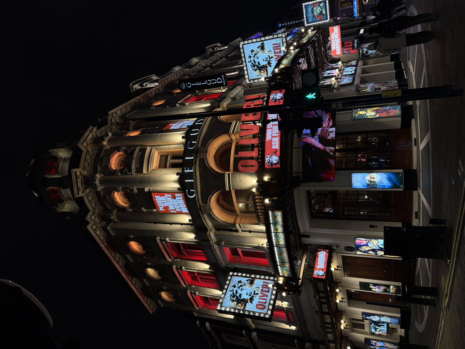 - "This nighttime shot showcases the Gielgud Theatre, adorned with illuminated signs promoting "Oliver!" and "DIVINE"" by FM-UmqDg1, licensed under CC BY 4.0