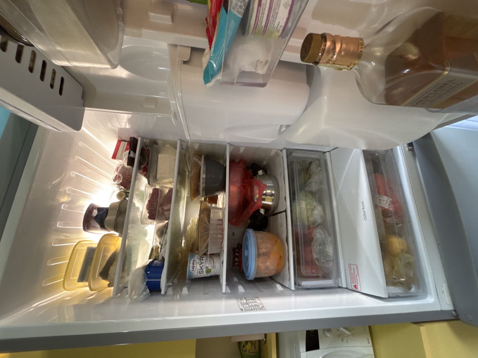 - "The image presents a forensic view of the interior of an open, brightly lit household refrigerator, situated within a kitchen environment in Varna, Bulgaria" by FM-cgRaw2, licensed under CC BY 4.0