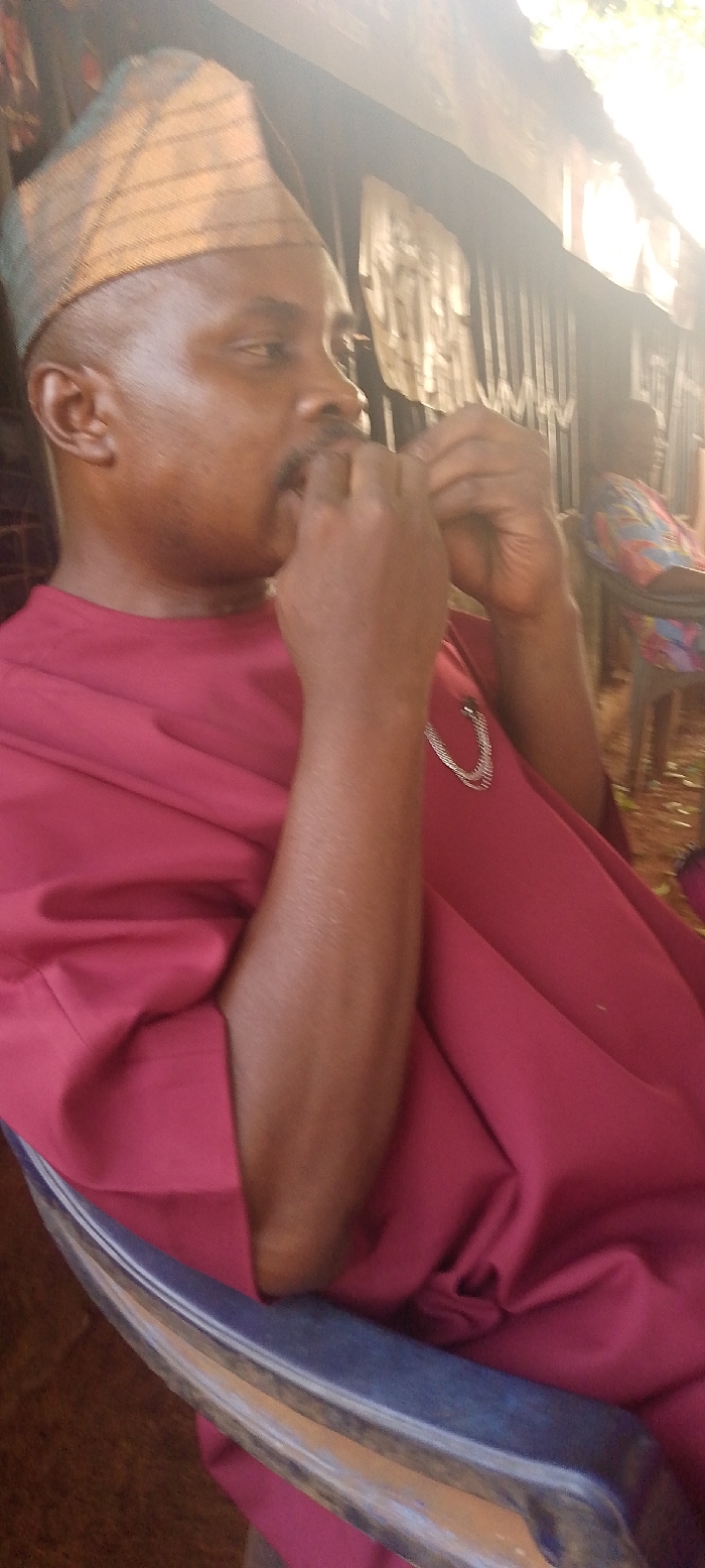 A middle-aged man wearing a traditional patterned cap and maroon robe sits in a chair