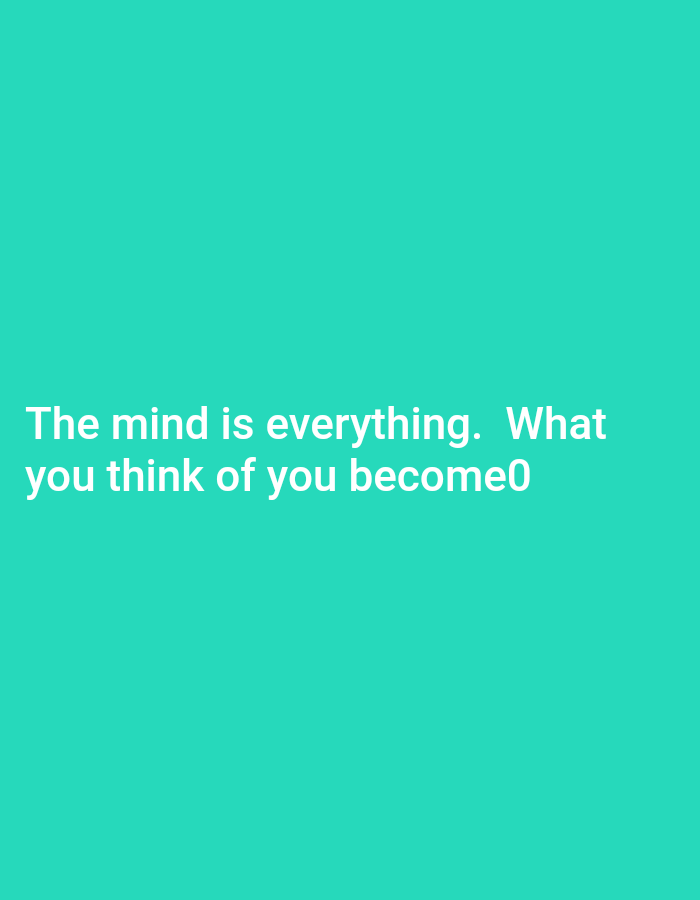 The image presents a turquoise background with a motivational message in white text. The text reads, "The mind is everything. What you think of you become0." The "0" at the end of the statement seems to be a typo or an error, making the quote incomplete or slightly altered from its original form. The overall visual effect is simple and direct.