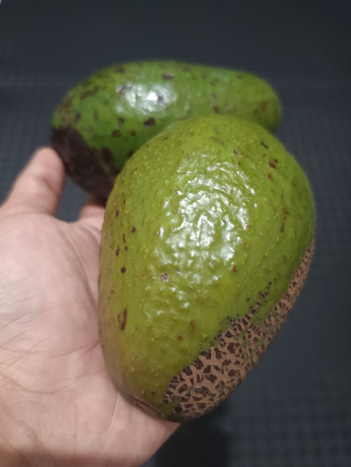 - "A light-skinned human hand holds two green, oblong avocados against a uniform dark gray background in Maleber, Indonesia" by FM-WRTkH2, licensed under CC BY 4.0