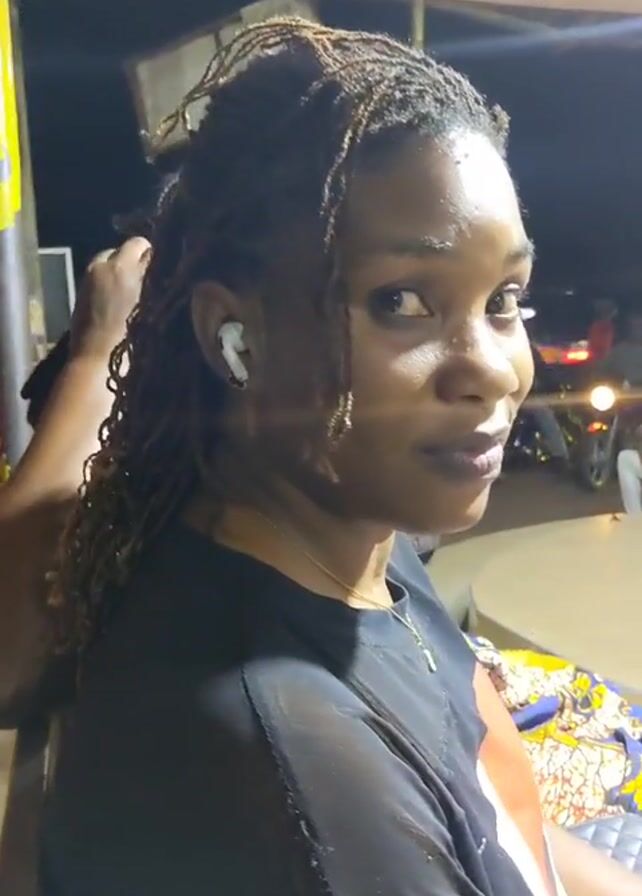 A medium shot captures a woman with brown locs, partially pulled back, and wearing white AirPods