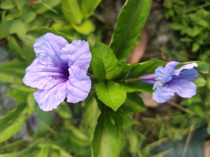 - "The image displays a close-up, overhead view of two Ruellia simplex (Mexican petunia) flowers amidst green foliage, observed in Ouderkerk aan de Amstel, Netherlands" by FM-PvkdH3, licensed under CC BY 4.0