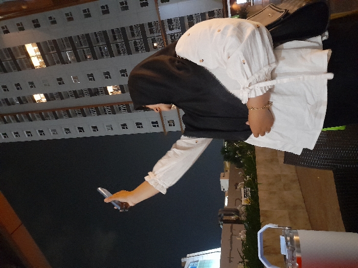 An individual, appearing to be female, is observed from the chest up at night in an elevated outdoor setting in Sidoarjo, Indonesia