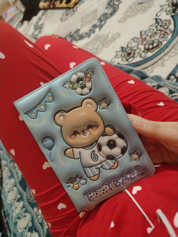 - "A light blue wallet with a cartoon bear wearing a soccer uniform, number six visible, and holding a soccer ball" by FM-fzt2K2, licensed under CC BY 4.0