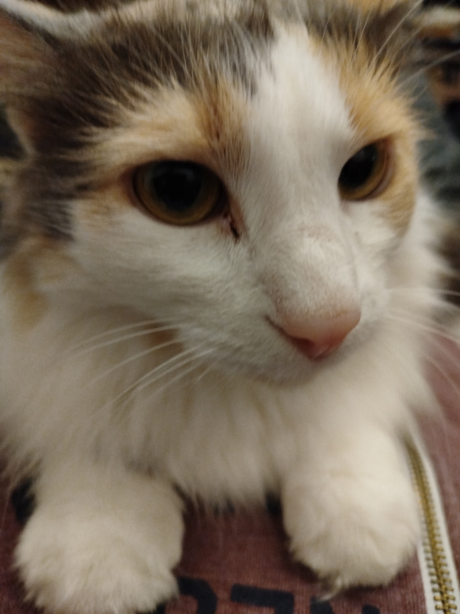 - "A close-up shot features a calico cat with white, brown, and orange fur" by FM-h6H6w1, licensed under CC BY 4.0