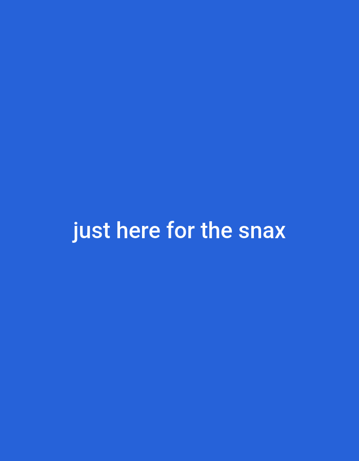 - "The image is a plain blue background with the text "just here for the snax" in white centered at the bottom" by FM-ZLCc53, licensed under CC BY 4.0