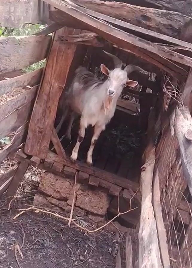 - "A goat stands inside a crudely built, wooden enclosure" by FM-UrRWw2, licensed under CC BY 4.0