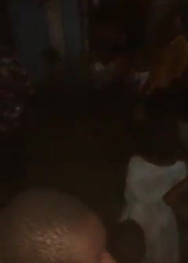 The video appears to be taken in a dark, crowded space, possibly indoors