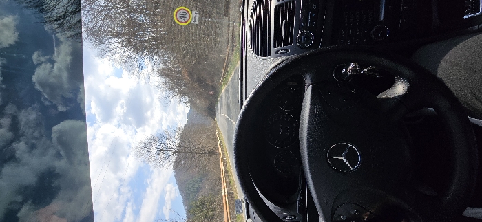 - "The image presents a first-person perspective from the driver's seat of a Mercedes-Benz vehicle, situated in Lovtsi, Bulgaria" by FM-OUQug1, licensed under CC BY 4.0