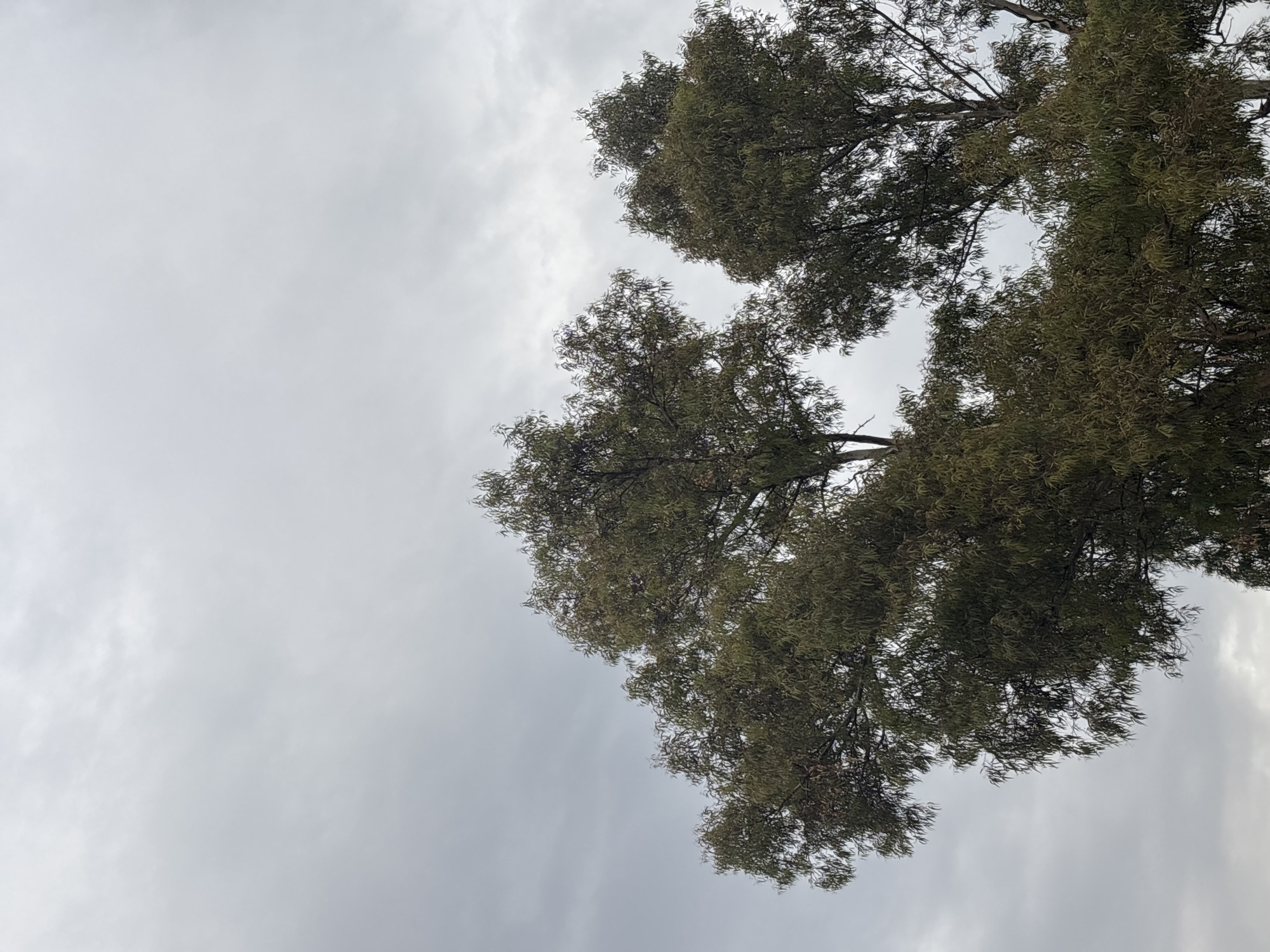 - "The photograph, taken from a low angle, captures the upper portion of a tree with dense green foliage against a cloudy, overcast sky" by FM-2EXno2, licensed under CC BY 4.0