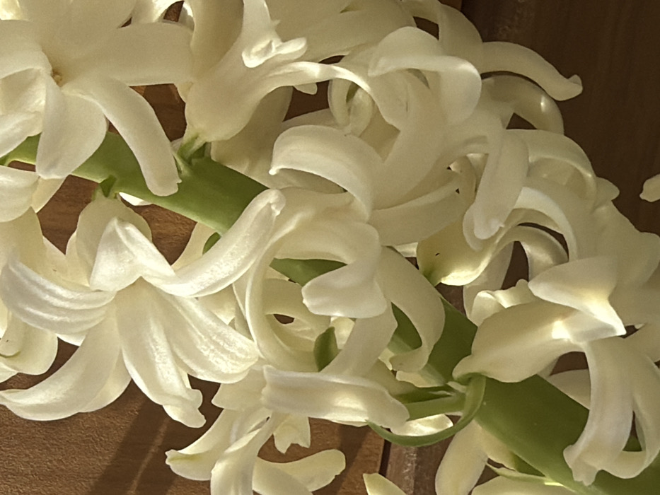 - "The scene depicts a tightly clustered inflorescence of white flowers, consistent with a hyacinth, against a warm brown background" by FM-k3pYj2, licensed under CC BY 4.0