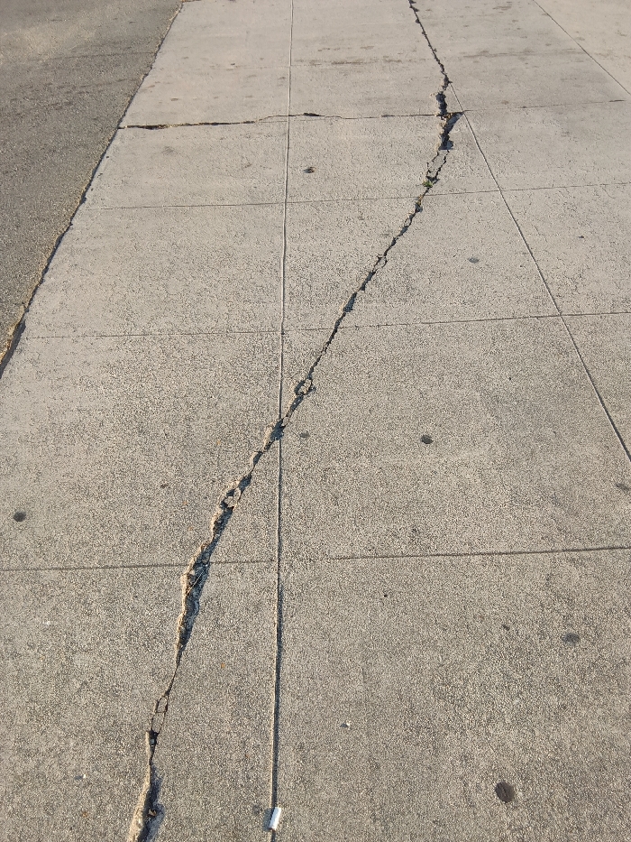 - "The scene depicts a damaged concrete sidewalk adjacent to an asphalt roadway in East Los Angeles, United States" by FM-7Rq8C3, licensed under CC BY 4.0