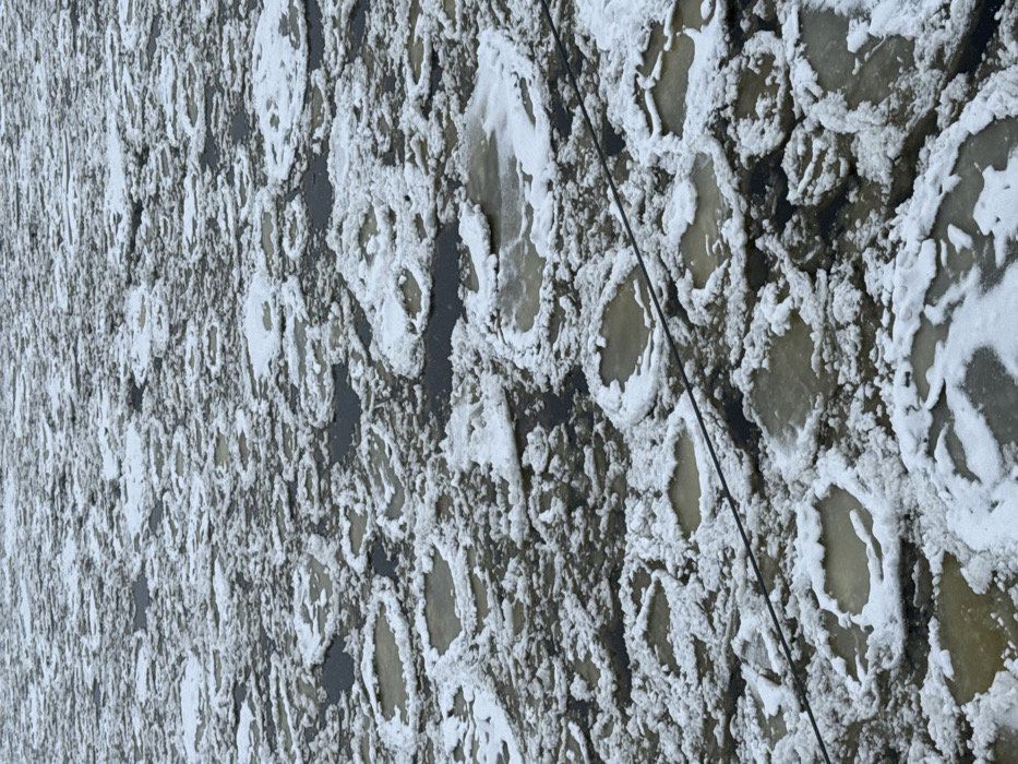 - "The scene depicts a wide expanse of a body of water located in Мастоўскі сельскі Савет, Belarus, largely covered by a dense formation of ice floes" by FM-yjK1X2, licensed under CC BY 4.0