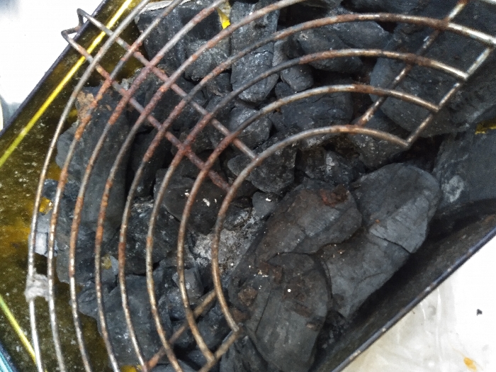 - "A close-up, high-angle shot depicts charcoal contained within a dark, possibly metallic, rectangular grilling apparatus, located in Phouviang-Gnai, Laos" by FM-oHfK92, licensed under CC BY 4.0