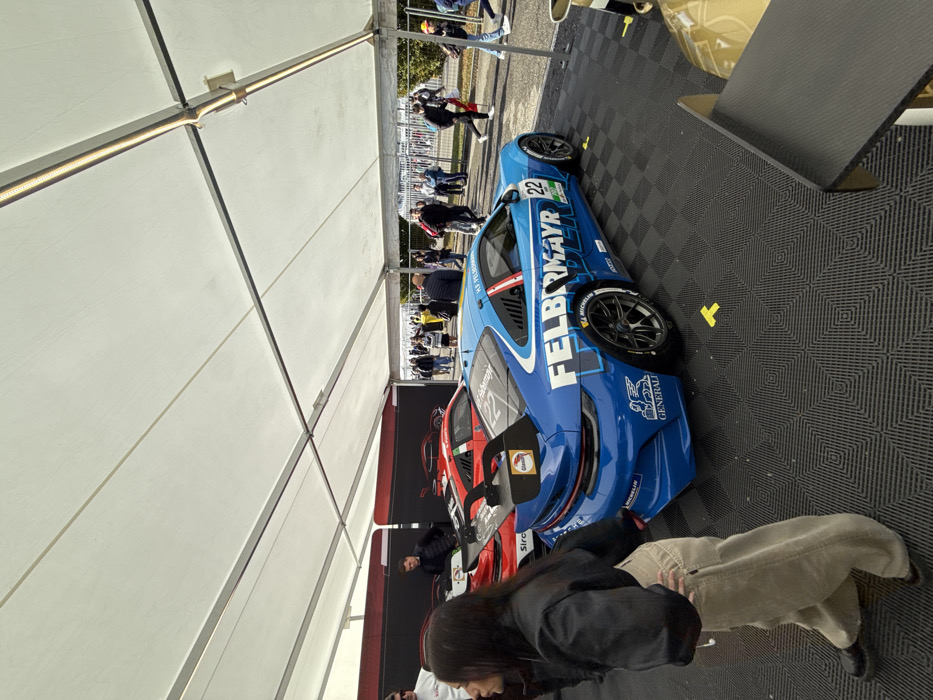 The scene depicts a semi-enclosed exhibition area at the Autodromo Nazionale Monza in Monza, Italy