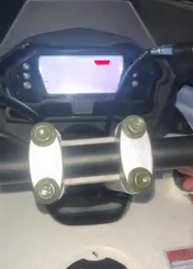 Here's a breakdown of the video: The video starts with a close up of a vehicle dashboard which lights up with colored displays. The display cycles through purple, green, and red. The view then zooms out to show the handle bars and controls. A hand appears and presses the ignition switch of the ATV, and it sounds like it turns over. The setting appears to be outside in snowy conditions. In the background an uncovered swimming pool is visible.
