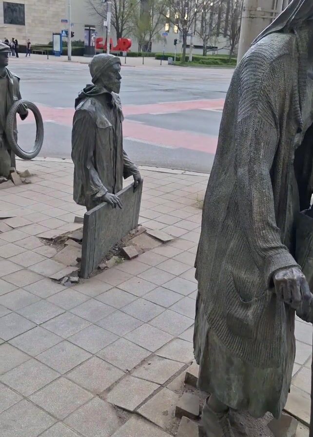 - "series of bronze sculptures placed along a tiled sidewalk in an urban setting" by FM-Ac1q33, licensed under CC BY 4.0